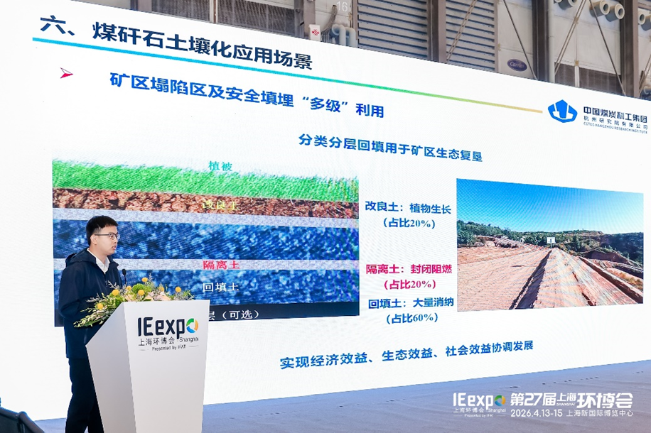 中煤科工集团杭州研究院有限公司助理研究员季晏平介绍了《煤矸石土壤化技术及应用》,报告指出煤矸石的安全利用和资源化是目前煤炭行业面临的重要难点和痛点问题。公司自主研发了煤矸石复合微生物菌剂,采用生态土制备与推广工艺,该技术投资少成本低,污染少风险低,生态好时效高,可广泛用于生态修复、绿化种植和园林绿化,为煤矸石规模化、安全化土壤化利用提供了可行路径。