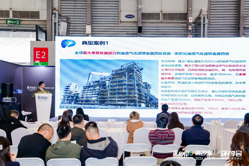 浙江百能科技有限公司副总裁、高级工程师赵琛杰分享了《固体废弃物高温热化学资源化转化装置应用案例》。作为国家级专精特新“小巨人”企业,百能科技长期深耕能源与环境领域,拥有20余年产业化经验,重点聚焦复杂工业废弃物(废液、浆体、固体、废气)的高温热化学转化资源高效利用技术研发。在报告中,重点展示了全球最大单套处置能力的油渣气化滤饼金属回收装置、山东裕龙石化一体化油渣汽化滤饼金属回收装置以及浙石化4000万吨炼化一体化基地固废废液废气集中处置装置等典型项目,实现了固废的减量化、资源化、无害化与能源化协同处置,为石化行业绿色低碳转型提供了有力支撑。